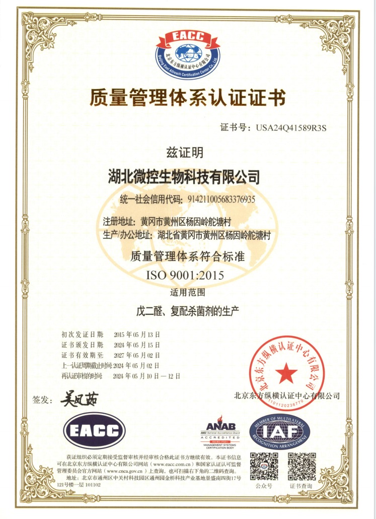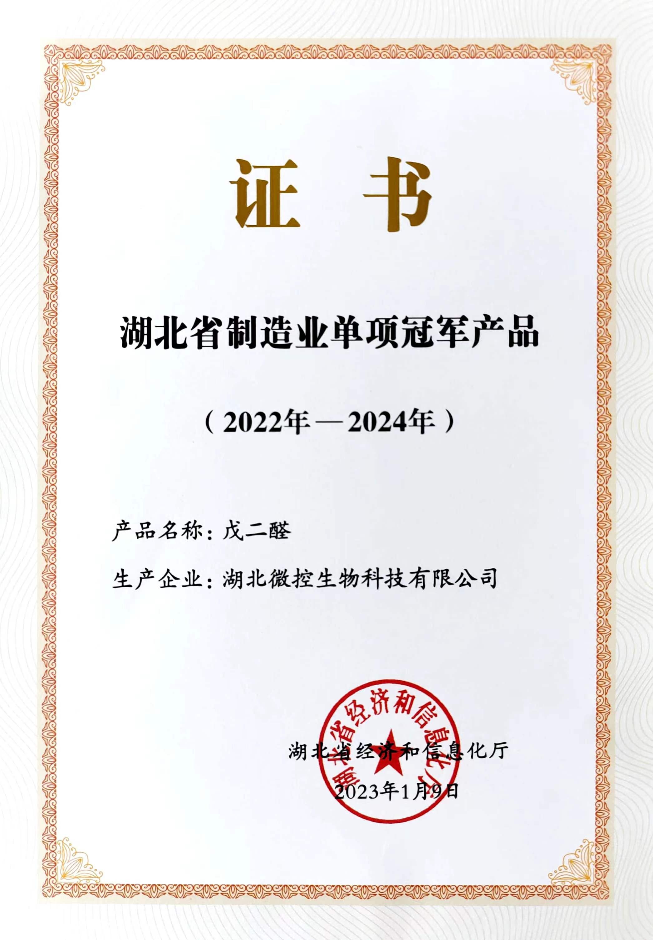 湖北省制造業(yè)單項(xiàng)冠軍產(chǎn)品(戊二醛)